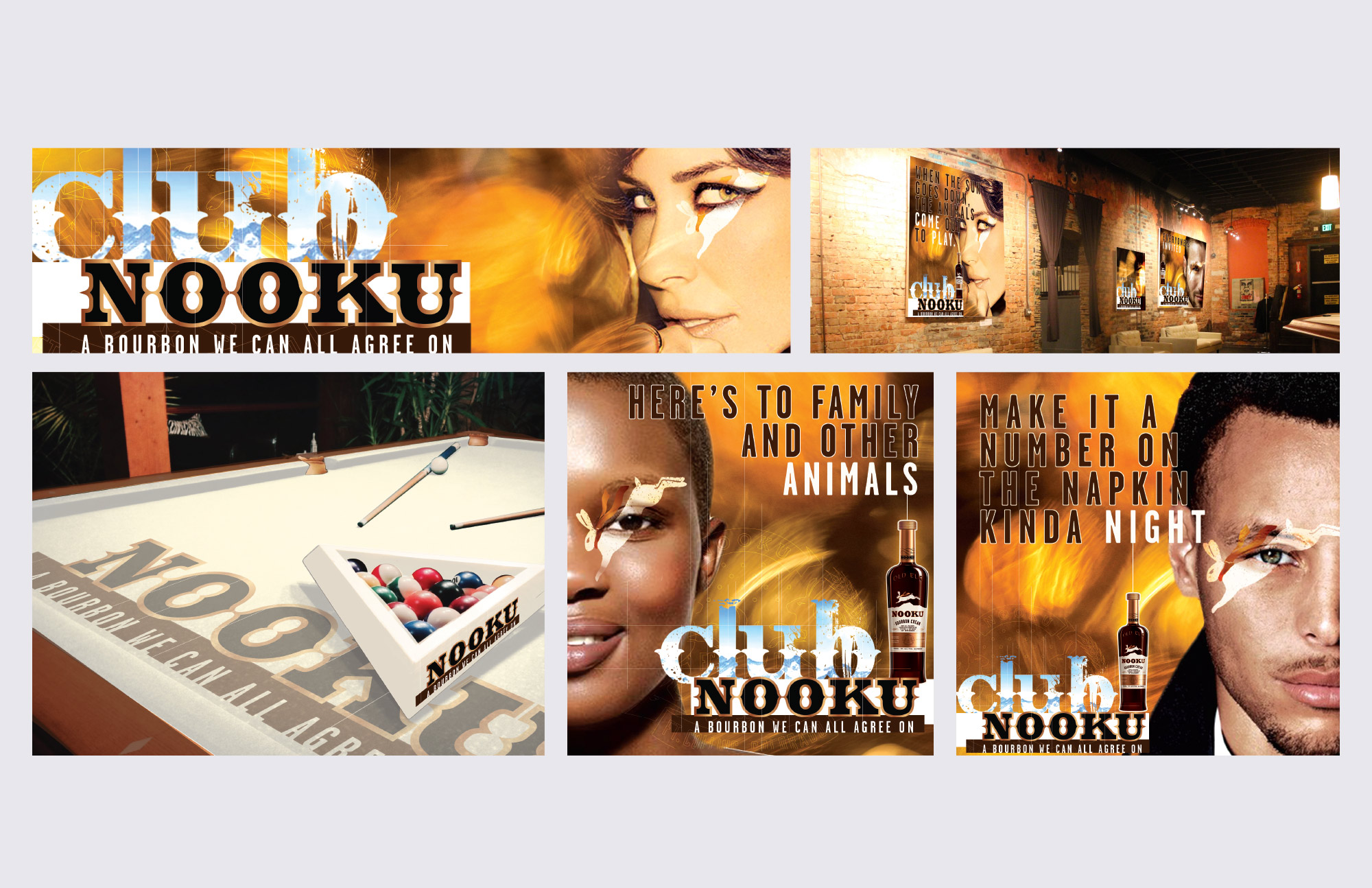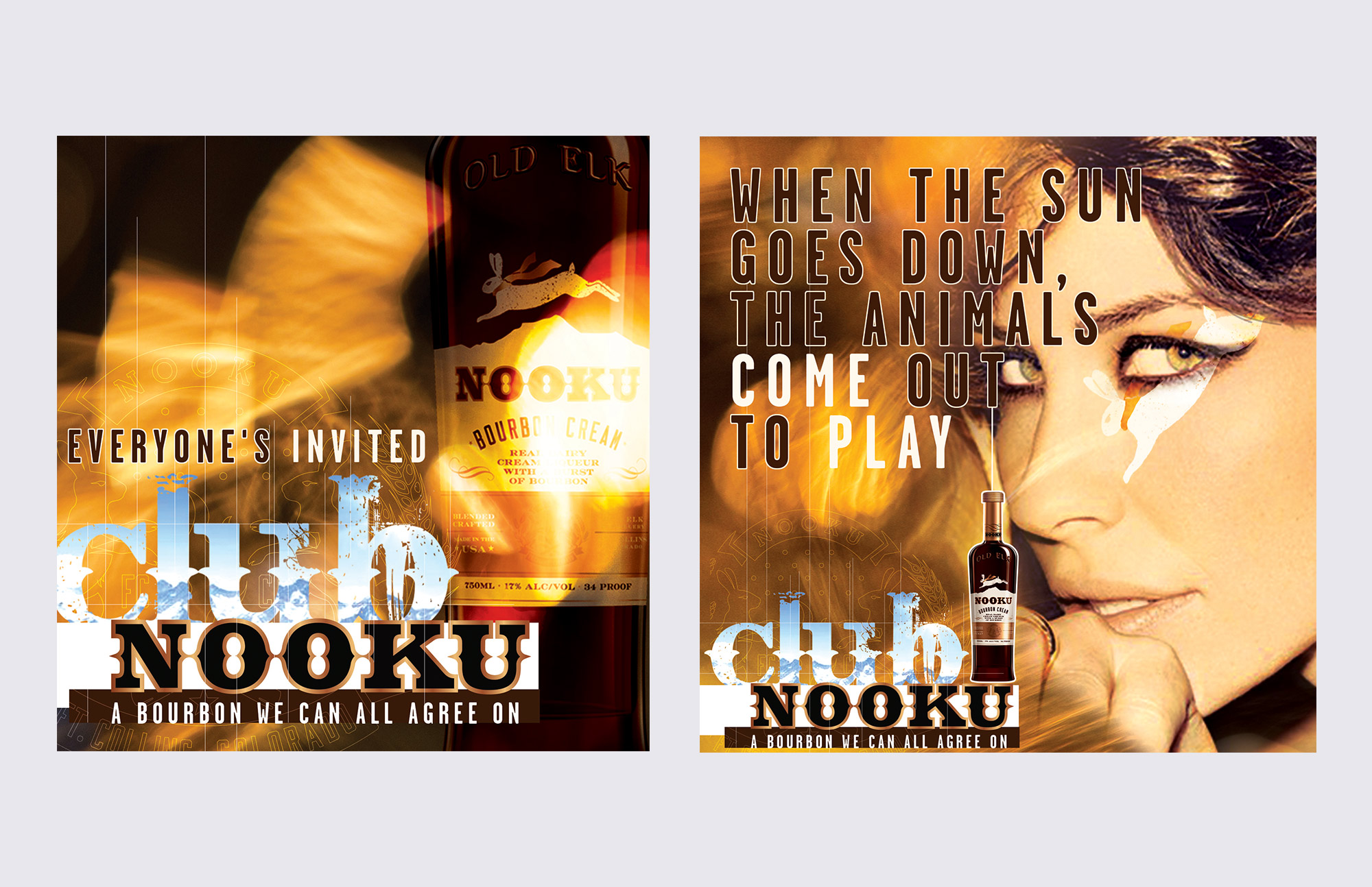 Branding for a new beverage, a mix of whole cream and Bourbon. We decided to go with the perfect match, in a dating scenario. Pairing the two together. In conjuction, we also came up with the branding for its night time activities, club Nooku. Leveraging the rabbit a constant look throughout.