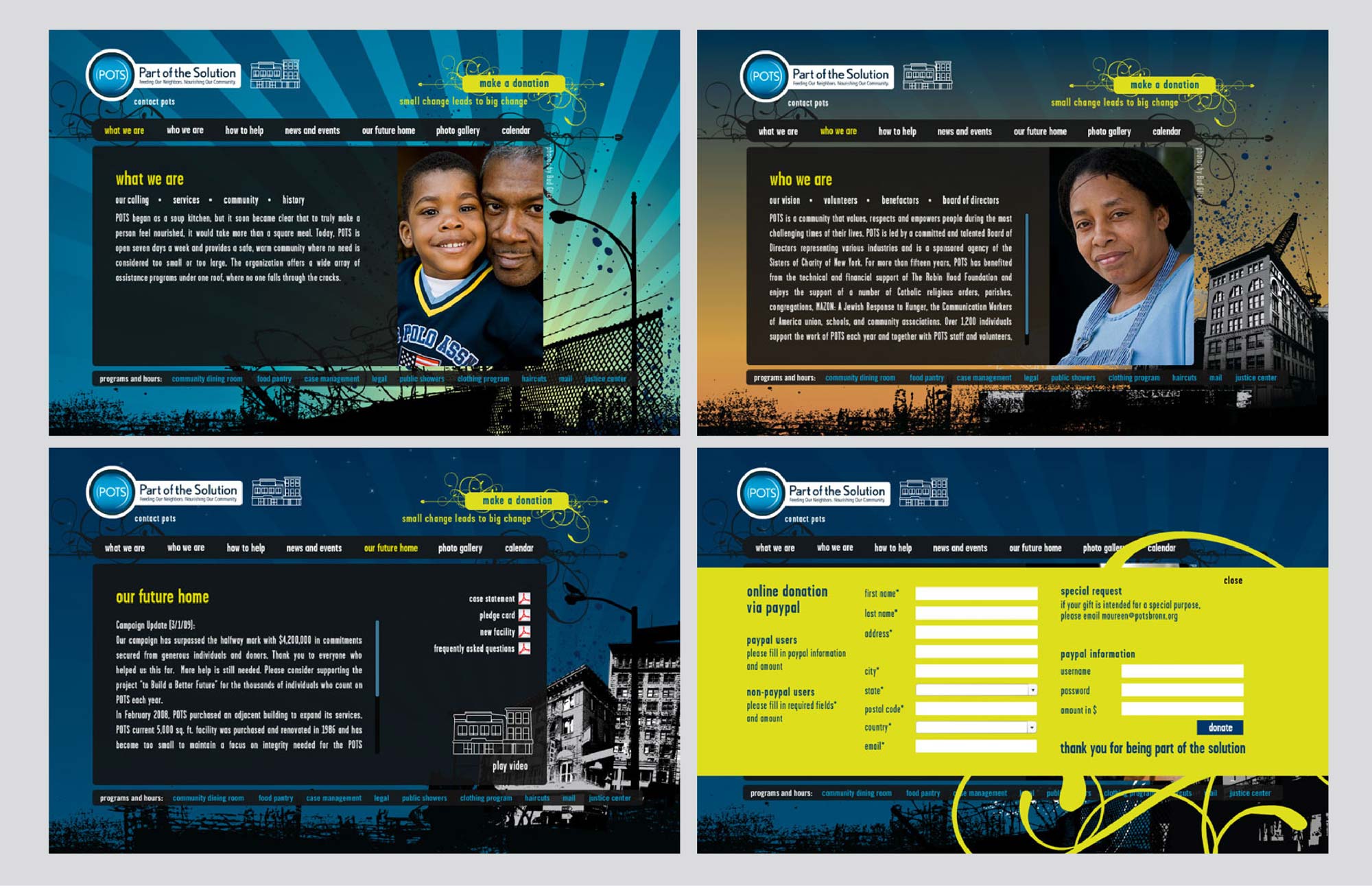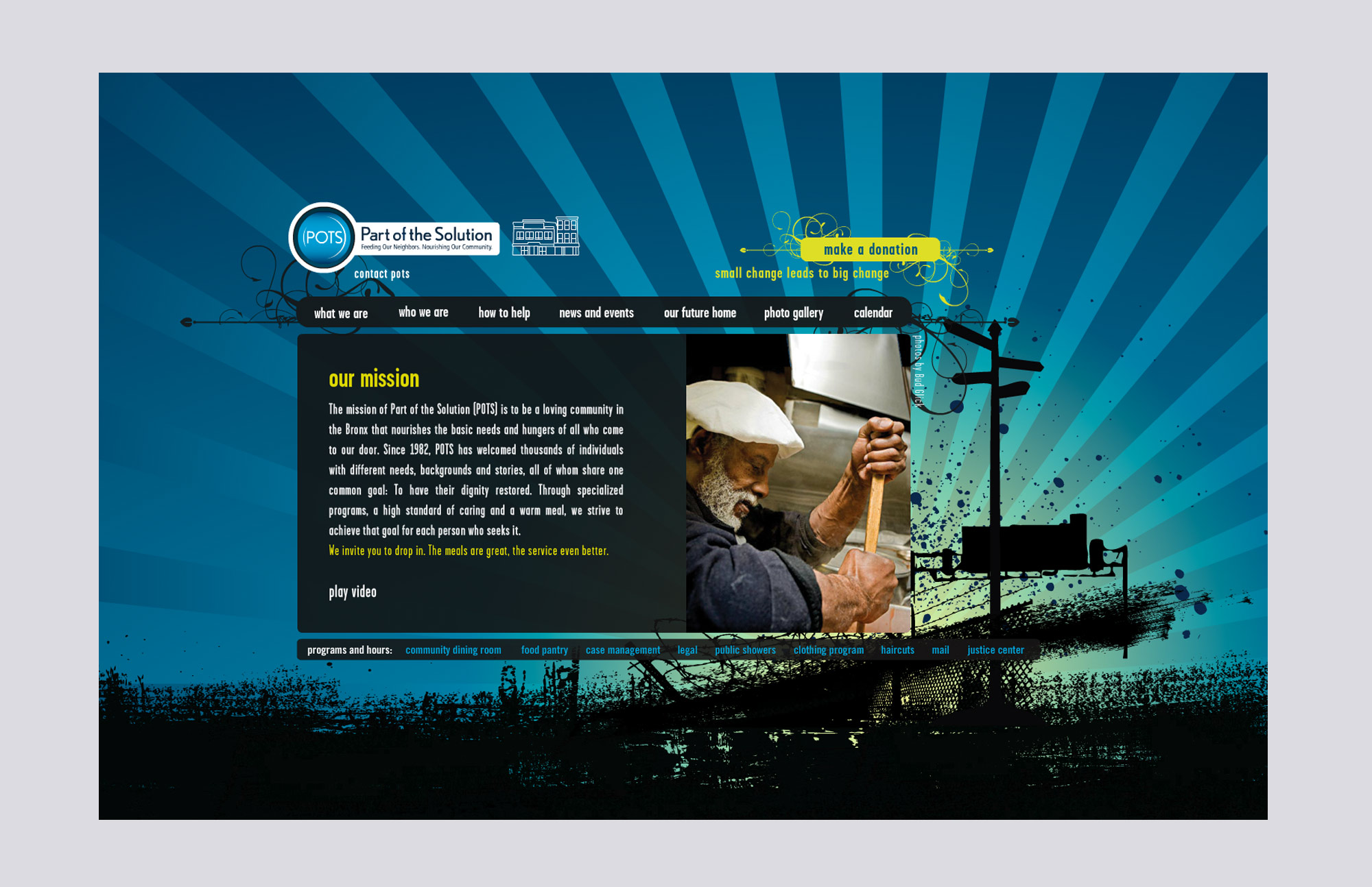 The website gives the viewer a thorough overlook of all the services provided and a means to make donations. The visual look is that of hope and optimism to match the print ads. The website changes its look to match the time of day, be it dawn, morning, twilight or night, letting you know that anytime is a good time for a donation to help the less fortunate.